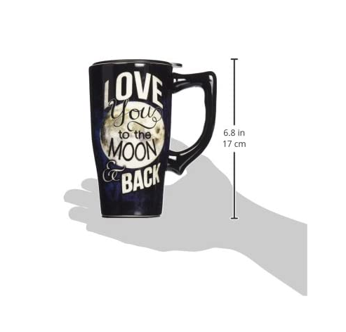 Spoontiques Love Moon and Back Travel Mug, 16 ounces, Black