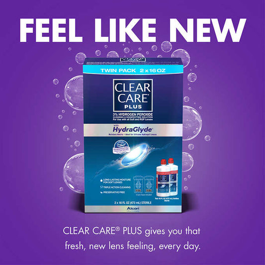 Twin pack Clear Care Plus Cleanse and Disinfect Solution 32oz