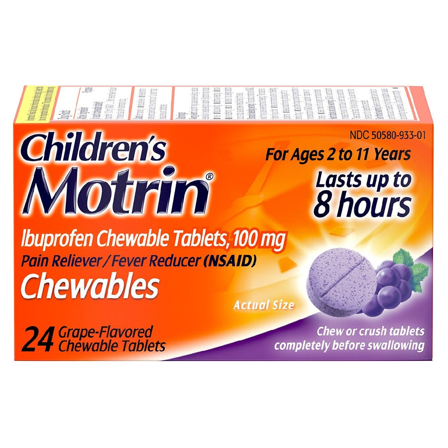 - Childrens Motrin Ibuprofen Chewable Tablets in Grape Flavor for pain and fever relief